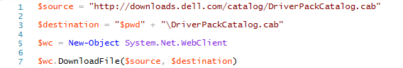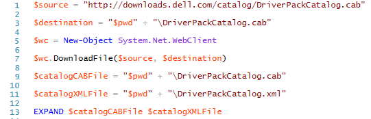$source = “http://downloads.dell.com/catalog/DriverPackCatalog.cab”
